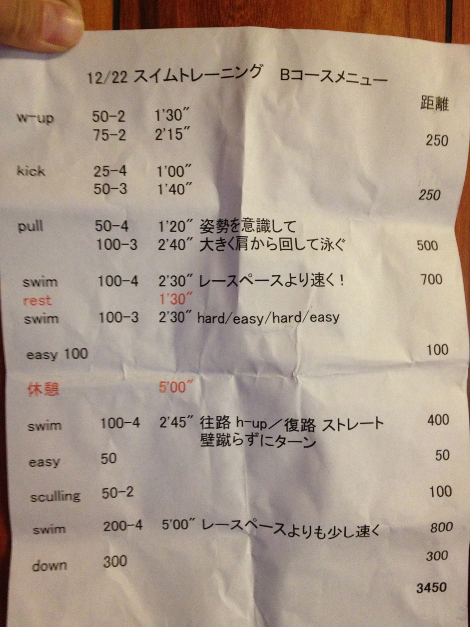最後の方は脚を攣らせない泳ぎで