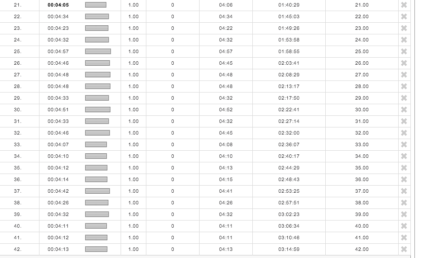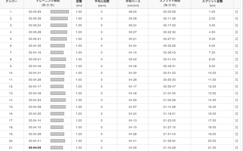 あと以下が、1kごとのタイムラップですのご参照ください。